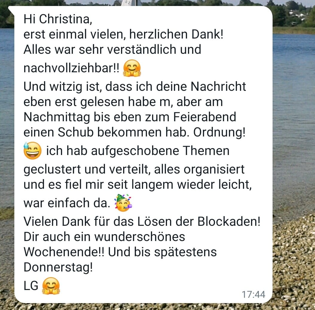 7 Tage, ein Audio am Morgen & Abend. Ein konkretes Problem, das endlich eine konkrete Lösung bekommt. Viele meiner Patientinnen berichten, erste Veränderungen seien nach 6 Tagen zu spüren.
